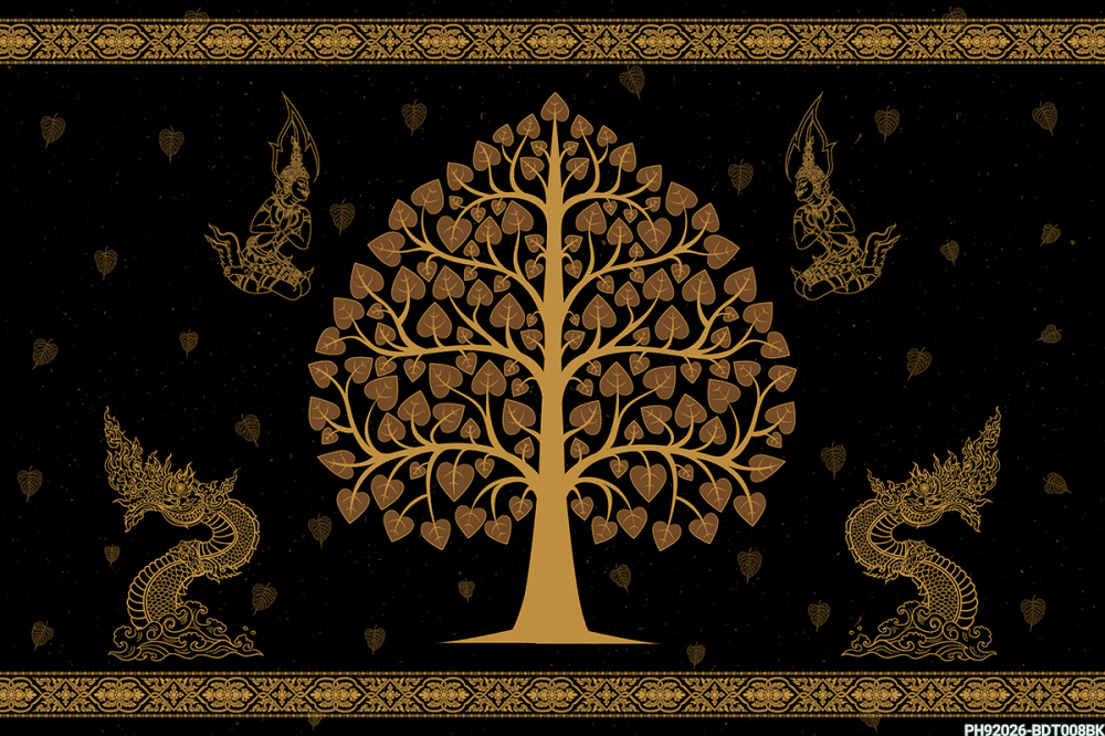 สัมผัสความสุนทรีย์อันล้ำค่าและอิทธิพลแห่งความมงคลที่ผนังห้องของคุณ ด้วยวอลเปเปอร์ภาพพิมพ์ลายไทยประยุกต์อันเลอค่า รังสรรค์อย่างวิจิตรบรรจงด้วยลายต้นโพธิ์ที่แผ่กิ่งก้านสาขาอย่างสง่างาม ท่ามกลางหมู่เทวดาที่สวดมนต์บูชา และพญานาคราชที่เฝ้าพิทักษ์ศาสนสถาน ผสมผสานความศรัทธาและความงามอย่างลงตัว