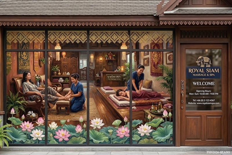 “พลิกโฉมร้านนวดไทยสู่ดินแดนแห่งความผ่อนคลาย ด้วยสติ๊กเกอร์ติดกระจก/ผนังสุดประณีต”